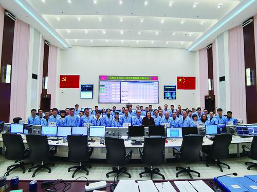 2021年春節期間,天問一號成功環繞火星,上海天文臺團隊在VLBI深空探測指揮控制中心合影。