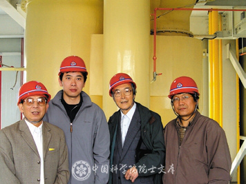 2004年,郭慕孫(右2)在呼和浩特煤系高嶺土中間實驗車間